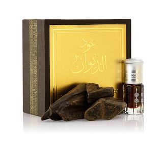 - عود الديوان المعبأ من نخبة العود، يتكوّن من علبة فاخرة و خشب طبيعي بوزن 30 جم ، وربع تولة دهن عود كمبودي فاخر