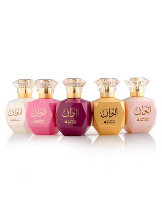 - طقم ألوان مكوّن من خمسة عطور نسائية العطر الاول يتكون من الياسمين وزهرة البرتقال مع لمسة ناعمة من المسك العطر الثاني يأخذك في رحلة عطرية منعشة مع عبق الليمون ويمتزج بجمال الورد وعبق الفانيليا العطر الثالث يجسد تناغماً رائعاً من التوت والياسمين وخشب الأرز وفخامة العنبر مما يخلق تجربة عطرية فريدة العطر الرابع يأخذك في رحلة ساحرة مع عبق جوز الهند الفاتن وجمال زهرة الأوركيد وزهرة الباتشولي العطر الخامس يأسر الحواس بلمحات من الكشمير الفاخر وجاذبية المسك الأبيض مع لمسات من الروائح الخشبية